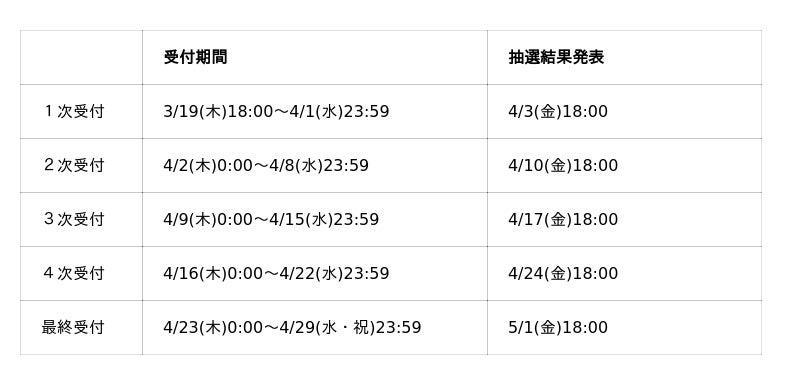 招待は事前申込制(各試合申込数に応じ抽選)となり、3/19(木)18:00より受付を開始いたします。