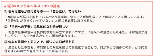 9割以上が悩みを抱えているという結果は、「悩みがあることが普通」であることを示しています。SNSでは他人の「うまくいっている面」ばかりが目に入りがちですが、実際にはほとんどの人が何らかの悩みを抱えながら日々を過ごしています。