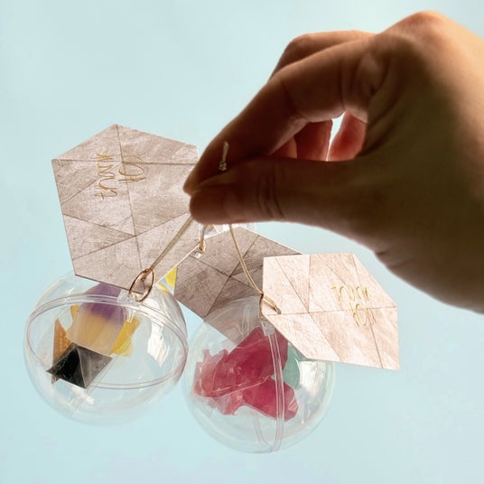 宝石や鉱物、小さなかけらや板を一箱に詰め合わせました。箱によって、少しずつ色や形が違っていたり、季節の小さなモチーフが入っていたり、わくわくと宝探しのような気分でお楽しみいただけます。