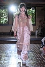 ギリシャ神話「オルフェウス」を着想源とした今季の「yushokobayashi(ユウショウコバヤシ)」。全体を通して、幻想的なパステルカラーのカラーパレットのコレクションを渋谷ヒカリエ ヒカリエホール ホールAで開催されました。(写真上右)
