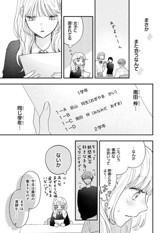 自分の恋愛は慎重に、大切にしたいと思っていた矢先、フラれていた梓(あずま)と委員会で再会!?苦手意識を持ちつつも助けてくれる梓に動揺する中、梓が別の女子にフラれているところにまたまた遭遇して…!?