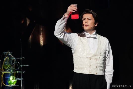 そして、ボーカルグループ「LE VELVETS」のメンバーとして活動し、『レ・ミゼラブル』ジャン・バルジャン役などを担い、ミュージカル界を牽引する俳優の一人の佐藤隆紀が、新たなジキル/ハイド像を生み出した。卓越した歌唱力を核に、一音一音に感情を宿しながら、理知的で抑制の効いたジキル像を緻密に構築している。徐々に均衡が崩れていく過程を、繊細に描き出し、ハイドへと転じる瞬間の内に秘めた渦巻く感情を一気に解き放つ瞬間は必見。音楽と芝居が高次元で融合したその表現は、“二面性”に新たな説得力を与えている。