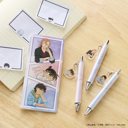 『名探偵コナン』付箋セット(画像左)990円(税込)/『名探偵コナン』アクリルチャーム付きボールペンセット(画像右)1,650円(税込)