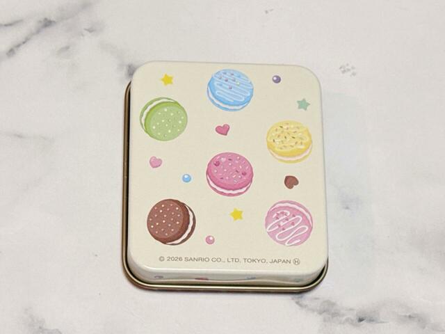マカロンをイメージした缶は、サンリオキャラクターたちの魅力がぎゅっと詰まったデザイン。中のお菓子を楽しんだあとは、小物入れとして使えるのも魅力です。