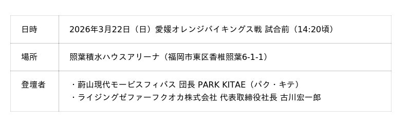 ライジングゼファーフクオカ株式会社(所在地:福岡市東区、代表取締役社長:古川宏一郎)は、アジア地域のプロバスケットボールクラブとの連携強化を目的としたパートナーシップを推進いたします。その第一弾として、韓国プロバスケットボールリーグ(KBL)所属の蔚山現代モービスフィバスとパートナーシップ協定を締結することとなりましたのでお知らせいたします。なお、2026年3月22日(日)に開催するホームゲームにおいて、両クラブによるパートナーシップ協定締結の発表セレモニーを実施します。