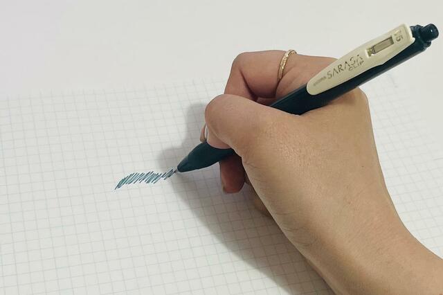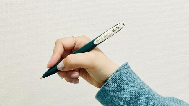 どこでも手に入る安心感がありながら、高級ラインの「サラサグランド」ではなく、あえて110円(税込)の定番モデルを使い続けているのは、出先で万が一忘れてもすぐに買い足せる身軽さが好きだから。