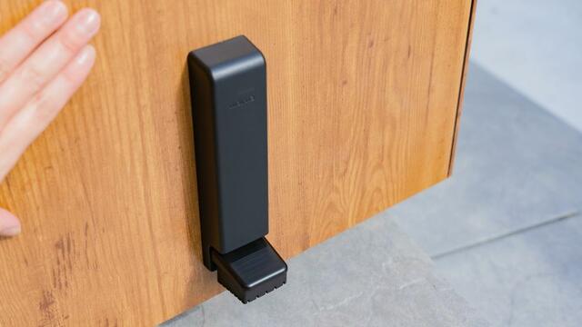 両手が塞がっていてもスムーズに操作でき、かつしっかり固定できるものを探して見つけたのが、マーナのドアストッパーです。