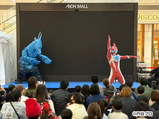 イオンモール高岡内に、アニメイトのオープンを記念してウルトラマンオメガが登場! みんなの熱い応援のもと、「きときとコート」でも大活躍!
