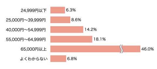 ランドセルの平均購入金額は62,034円となり、前年より上昇が見られました。特に「65,000円以上」の高価格帯を選ぶ割合が46.0%と半数近くを占めており、高価格帯への支持の高さが平均金額を押し上げている状況です。近年の傾向として、品質やデザイン、機能性に価値を見出し、価格よりも納得感を重視する購買行動が定着しつつあります。一方で、価格上昇は続いているものの、その伸び幅は緩やかであり、ランドセル市場全体としては安定した価格帯の中で選ばれている様子がうかがえます。