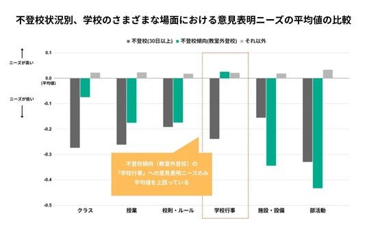 不登校傾向の子の学校の様々な場面における意見表明ニーズ、「学校行事」のみ異なる傾向