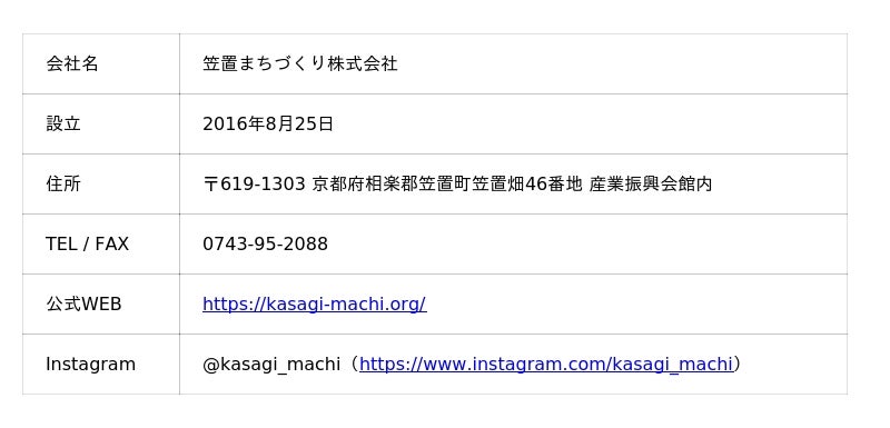 笠置まちづくり株式会社は、今後もさくらまつりをはじめとする地域イベントを継続的に開催し、笠置町の魅力発信と地域交流の促進に取り組んでいきます。最新情報は公式Instagramにて随時発信しています。会社概要