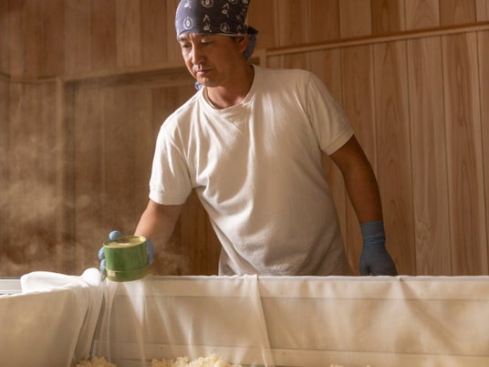 米由来のやわらかな香りに、桃を思わせる甘やかな果実香がふわりと立ち上がり、落ち着きのある上品な印象。