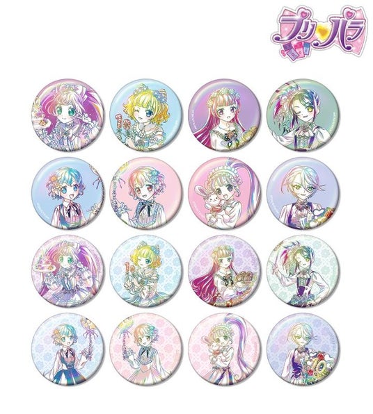 真中らぁら、南みれぃ、北条そふぃ、東堂シオン、ドロシー・ウェスト、レオナ・ウェスト、真中のん、紫京院ひびきのイラストを新たなタッチで魅力的に表現し、オーロラ加工を施した缶バッジに仕上げました。