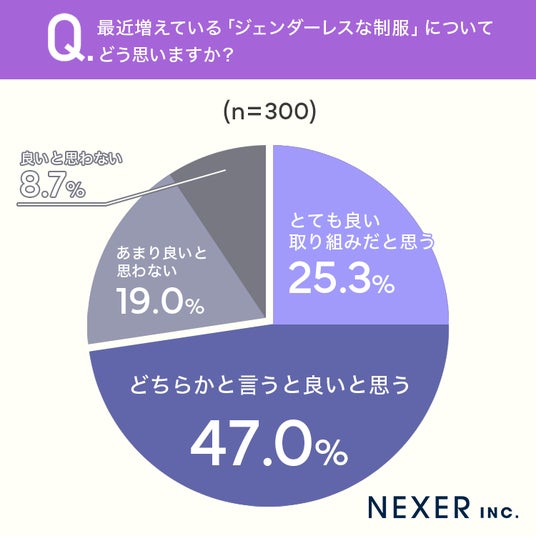 続いて、最近増えている「ジェンダーレスな制服」についてどう思うかを聞いてみました。