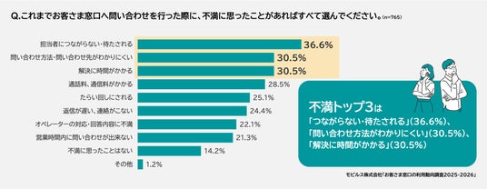 コンタクトセンター向けCXソリューションを開発・提供するモビルス株式会社(本社:東京都品川区、代表取締役社長:石井智宏、以下:モビルス)は、CX(顧客体験)向上を支援するテクノロジーの調査・普及を行う「CX-Branding Tech. Lab」の取り組みとして、企業のお客さま窓口に問い合わせをしたことがある、全国の男女765人を対象に第6回目となる「お客さま窓口の利用実態調査2025-2026」を実施しました。