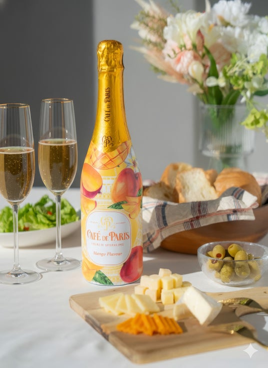 濃厚な甘みとさわやかな酸味が絶妙なバランスの味わいや、スパークリングワインの爽やかかつ生き生きとした口当たりが愉しめる「カフェ・ド・パリ マンゴー」は、ガーデンピクニックや夏のアペリティフ、ホームパーティのドリンクや手土産にもおすすめです。