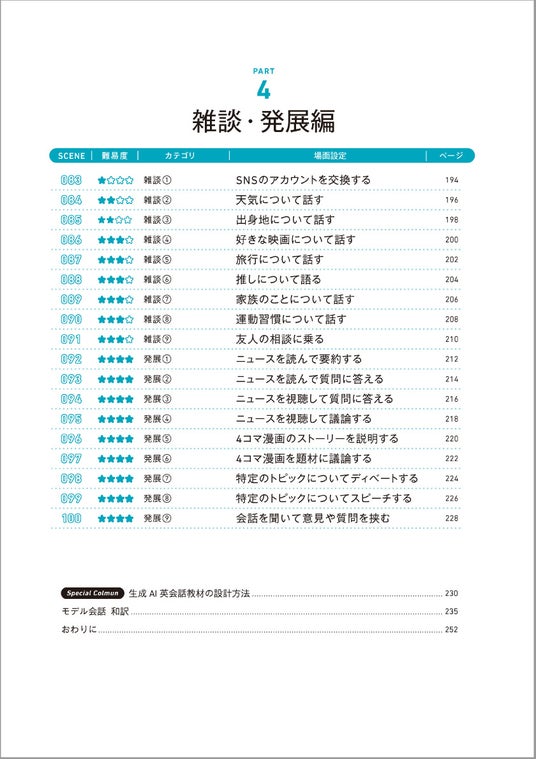 ビジネス、「推しについて語る」といった雑談シーンまで網羅。
