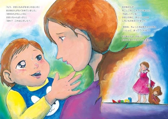 この絵本は、「網膜芽細胞腫(もうまくがさいぼうしゅ)」という病の啓発であるとともに、病気で苦しむ人を支えている家族を応援する作品です。