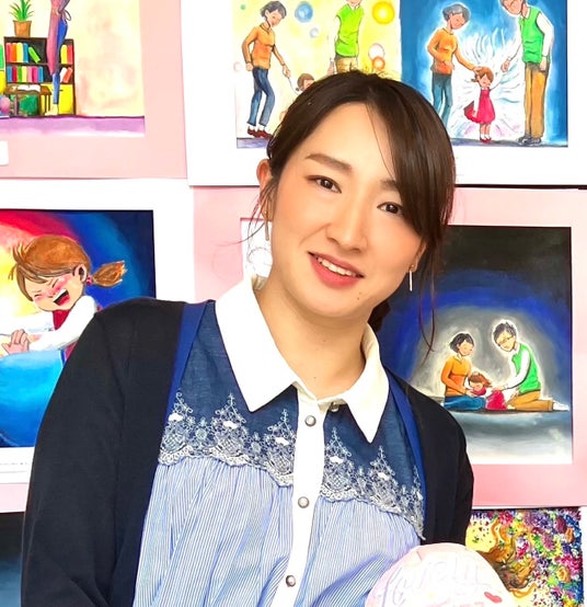 小児がんの一種である「網膜芽細胞腫」で娘が全盲になり、入院生活に付き添う中で絵を描き始める。この絵により自身の心を立て直し、同じように苦しむ子どもや家族に寄り添う活動を続けている。