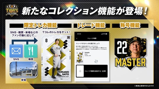 「動く」トレカや音声入りのトレカなど、デジタルならではのリッチな演出で選手の躍動感を再現。また、SNS連携、グッズ購入、球場への来場といったファンアクションに応じて限定トレカが獲得できる「限定トレカ機能」を搭載しています。さらに、ユーザー同士でカードを交換できる「トレード」機能や、活動実績に応じた「称号」システムにより、コレクションの楽しさを最大化します。