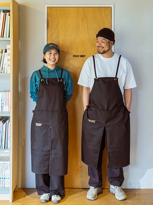 エプロンやTシャツは施設スタッフも着用。特にエプロンは撥水加工が施され、足さばきのしやすさやポケットのサイズ感など細かなギミックのあるスペシャルなアイテムです。