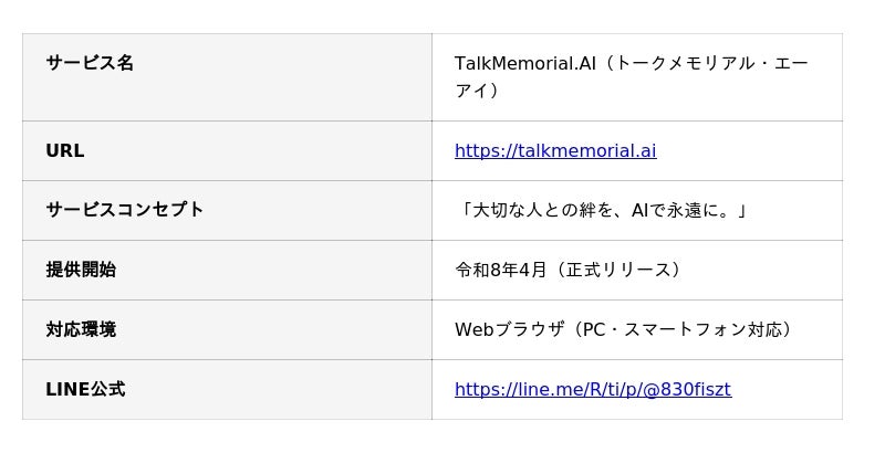 AI故人サービス「TalkMemorial.AI」:https://talkmemorial.ai