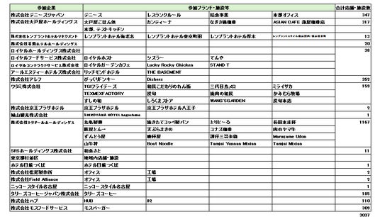 合同でイベントに参加する外食産業及びホテル業一覧(3月18日時点)
