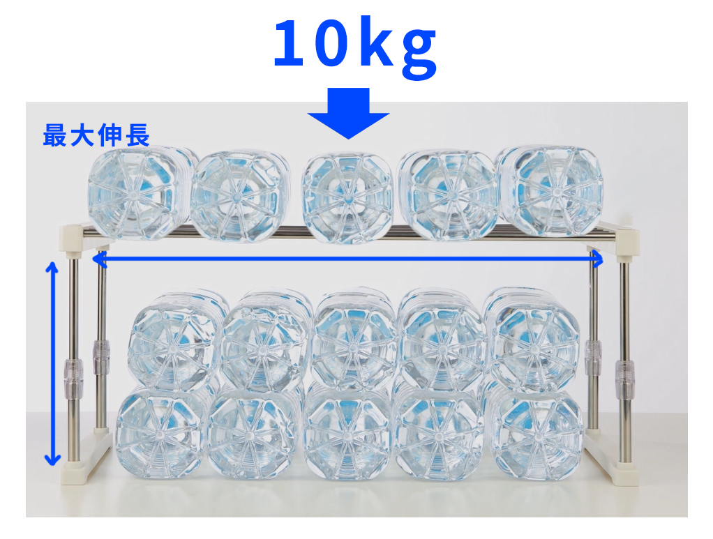 最大伸長でも10Kgの耐荷重があります。
