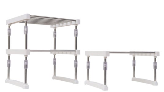 タイトル:隙間やスペースに合わせて棚が欲しい!を可能にする収縮と重ねのステンレス製棚