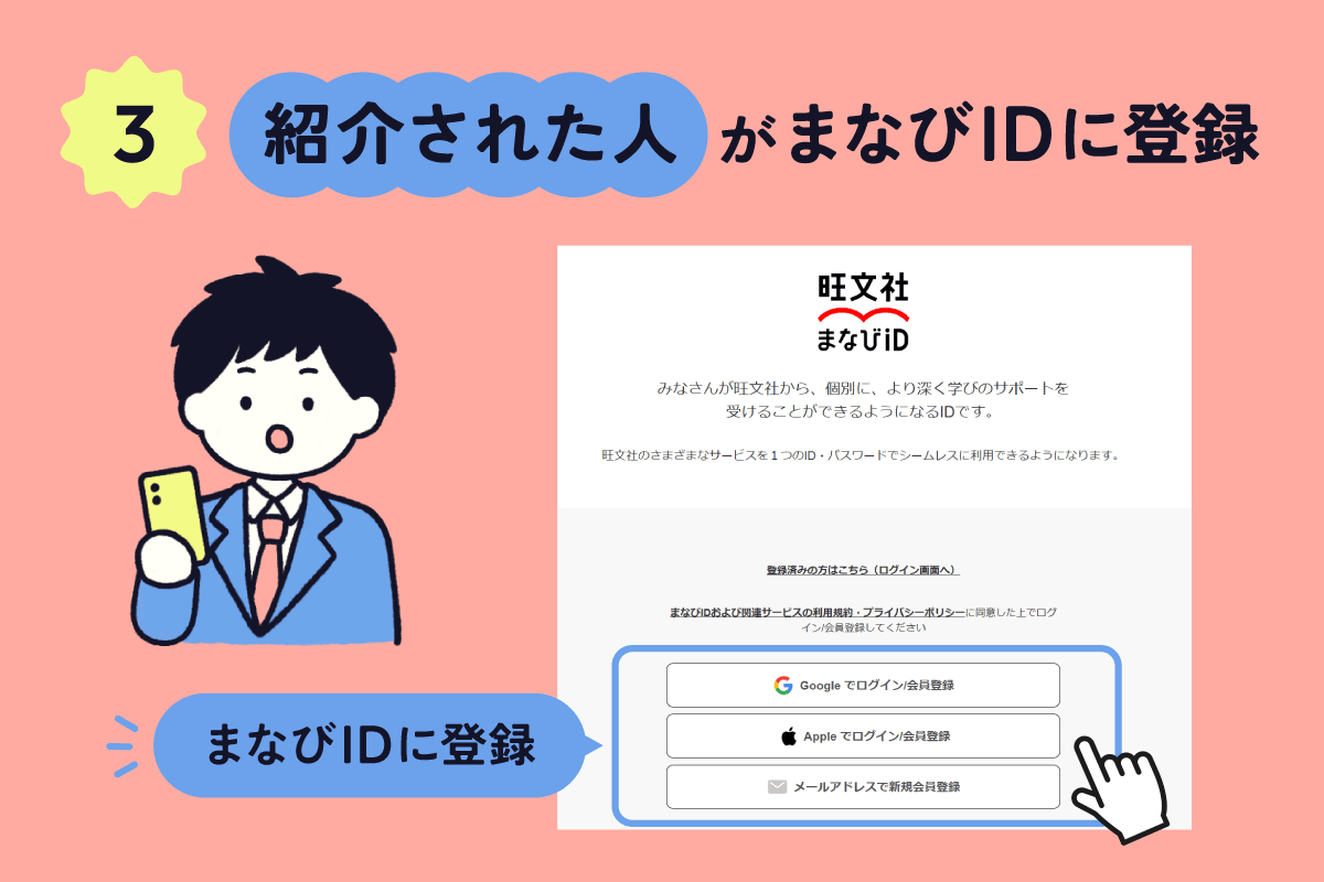 3.紹介された人(友人)がまなびIDに登録