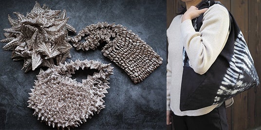 写真左:Tegumo Shibori Bag 写真右:Botan Shibori Bag