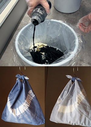 写真下:リバーシブルに染め上がった東袋