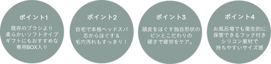 POINT3 頭皮をほぐす独自形状のピンとこだわりの硬さで疲労をケア。