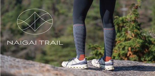 NAIGAI TRAILは、登山やウルトラマラソンなど、豊富なフィールド経験を持つ社員が企画・開発を担当。実体験に基づく視点を活かし、過酷なアウトドア環境に対応する機能性と快適性を追求した本格仕様のアイテムを展開しています。長年培ってきた靴下づくりの技術と、フィールドでのリアルな経験を融合させた新商品を通じて、アウトドアアクティビティをより快適にサポートします。