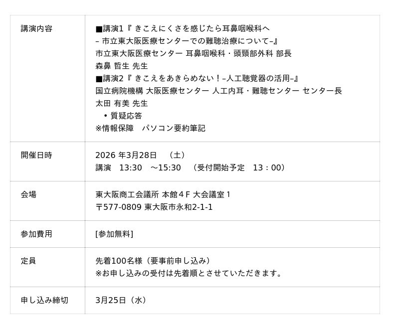 ※本セミナーは、難聴に関する理解促進を目的としており、特定の製品を宣伝したり、特定の製品に関する具体的な情報を提供したりすることを目的とするものではありません