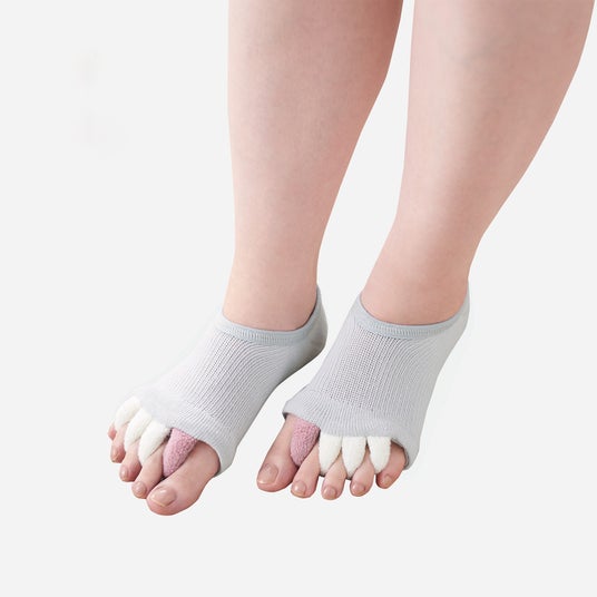 指の間をぐっと広げて一日頑張った足をすっきりストレッチケア。
