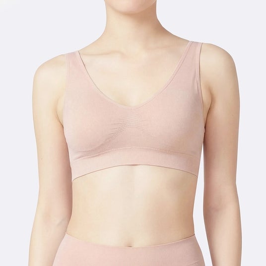 伸縮性に優れた立体編みを採用し、優しい着用感ながらバストをきれいに見せるこだわり設計のブラです。筒状に編み立てることで縫い目を最小限に抑え、身体を包み込むようなスムーズな着心地を実現しました。