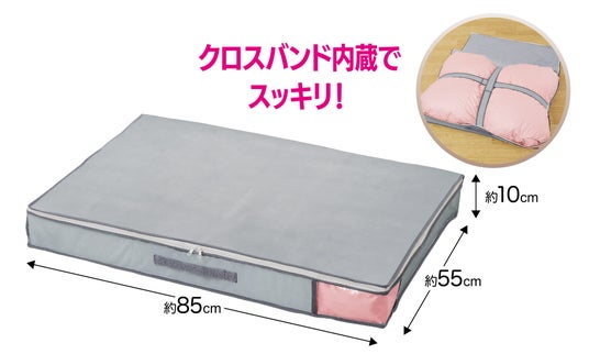 内蔵されたクロスバンドでシングルサイズの羽毛布団のボリュームを抑えてコンパクトに収納することができます。