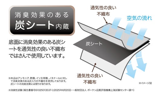 底面に消臭効果のある炭シートを内蔵しているので長時間の保管でもニオイ移りを防いでくれます。