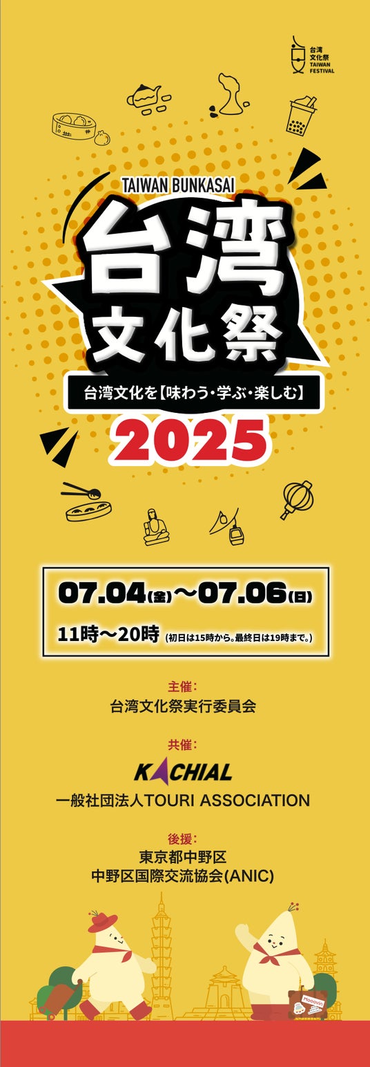 台湾文化祭実行委員会(事務局:東京都)は、2026年6月26日(金)から6月28日(日)の3日間、東京都中野区にて「台湾文化祭2026」を開催することを決定いたしました。 本イベントの開催に伴い、台湾の食・雑貨・文化を届ける出店者、および本イベントを多方面からご支援いただけるスポンサー企業の募集を開始いたします。