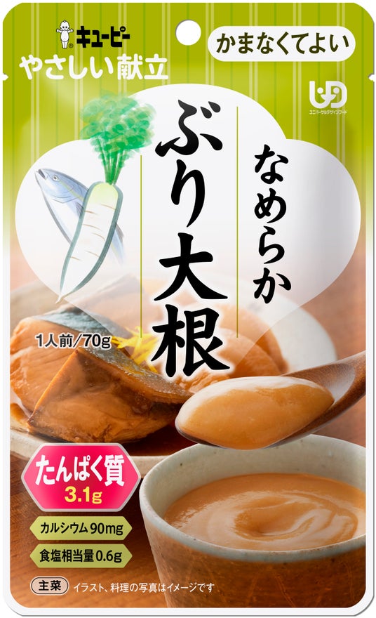 主菜部門 入賞「やさしい献立 なめらかぶり大根」ぶりと大根にしょうゆとかつお節のうま味をきかせ、なめらかに裏ごしして煮込みました。ほんのりゆずが香ります。タンパク質とカルシウムに配慮しており、UDFの「かまなくてよい」区分の商品です。賞味期間は19カ月(常温)です。