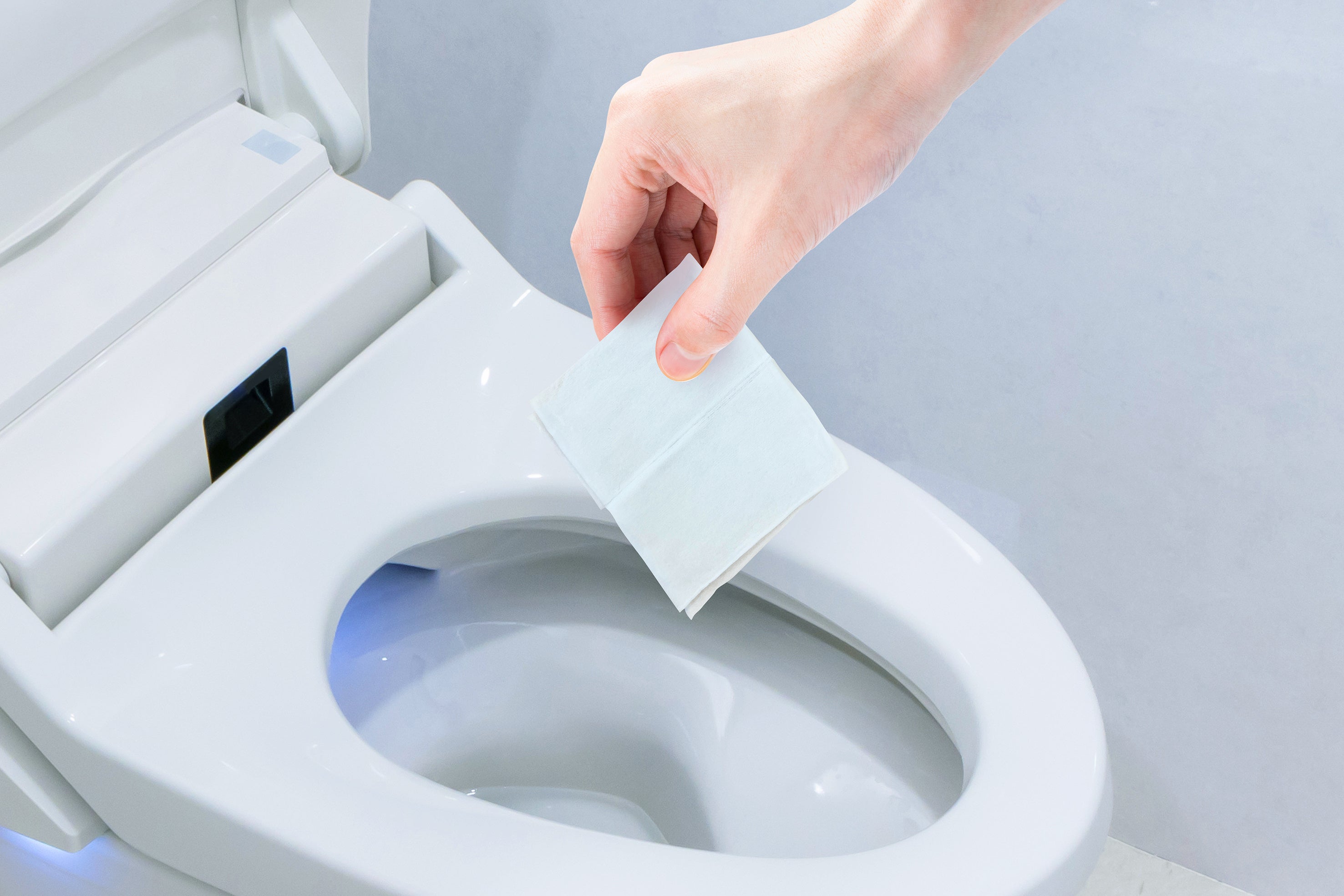 ※1 トイレのつまりを避けるため、必ず1枚ずつ「大」の水量で流してください。水流が弱いとトイレに詰まる可能性があります。トイレに流さない場合は、可燃ゴミとして処理してください。