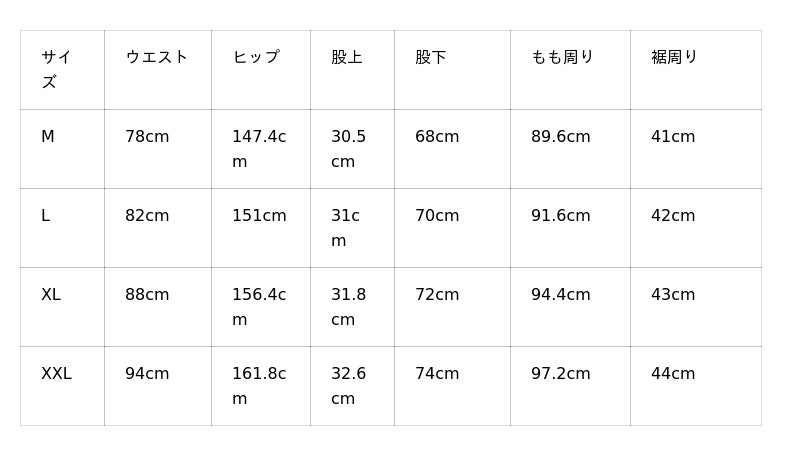 ※ サイズ詳細は、メーカー独自の採寸方法で計測したサイズです。予めご了承ください。