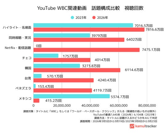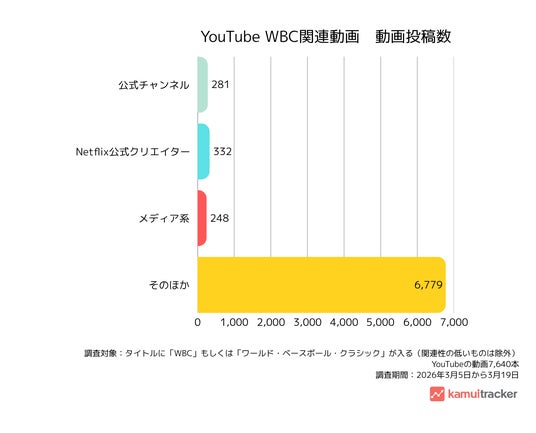株式会社エビリー(本社:東京都渋谷区、代表取締役社長:中川恵介、以下エビリー)は、当社が提供するYouTubeデータ分析ツール『kamui tracker(カムイトラッカー)』を用い、2026年3月に開催されたワールド・ベースボール・クラシック(以下、WBC)について、YouTube上の関連動画動向を分析しました。