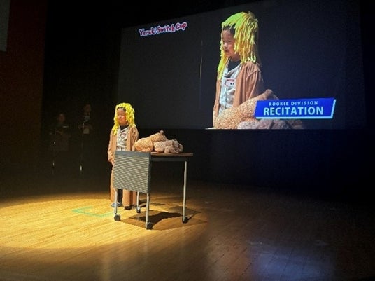 4分間にわたる長文の暗唱を全員がノーミスで完走。声のトーンやスピードを工夫し、観客を惹きつける高い表現力を披露しました。