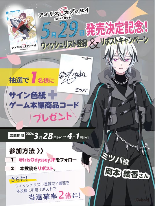 株式会社フロンティアワークスは、自社ゲームブランド「FW Games」にてプロモーション協力を行っております合同会社イースニッド(代表社員:太田一行)がSteamにて開発中の新作フルボイス現代ファンタジーADV 『アイリス・オデッセイ パンドラの少女』 の発売日が 2026年5月29日(木) に決定したことをお知らせいたします。