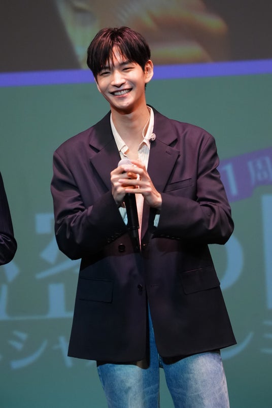 大きな歓声が響く中、3人がステージに登場。日本ファンとの初めての出会いに少々緊張気味の様子でしたが、ファンたちの歓迎に満面の笑みを見せました。スケジュールの関係で不参加となったダオン役のキム・ジュンソからビデオメッセージが届くと、「メッセージをくれるとは思っていなかったのでびっくりしました。最近ジュンソは一生懸命(音楽活動を)頑張っていてなかなか会えませんが、映像で顔を見ると会いたくなりますね」とホヨン。ジョンウは「ジュンソ兄さんがいたらもっと盛り上がったと思いますが、今日は3人で雰囲気を盛り上げていい時間を作りたいです」と話し、頑張ります!とガッツポーズを見せました。