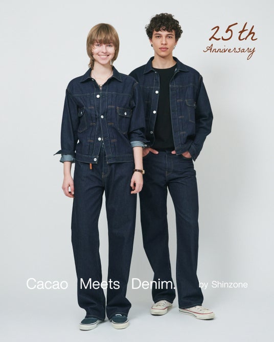株式会社シンゾーン(本社:東京都渋谷区/代表取締役:染谷裕之)は、 株式会社 明治と国内縫製に特化したデニム・布帛のOEM/ODM事業を展開する株式会社ドアーズおよびパートナー企業の連携により開発された、カカオバイオプラスチック由来の繊維を使用した「カカオデニムコレクション」を、2026年3月26日(木)よりシンゾーン直営全店舗および公式ECサイトにて発売いたします。また、本年は創立25周年を記念し、年間を通して限定アイテムやポップアップなどを続々と展開していく予定です。