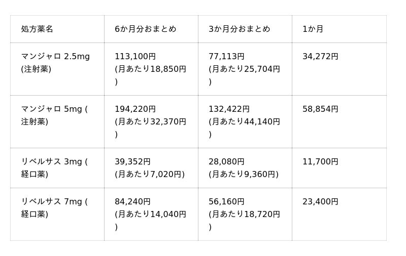 ※マンジャロ・リベルサスは、2型糖尿病の治療薬として厚生労働省に承認されています。肥満治療目的での処方は国内で承認されていません。