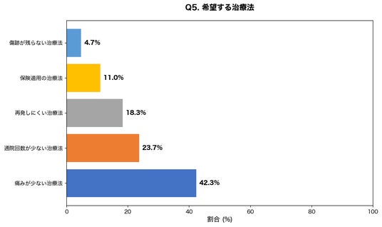 【調査結果】「痛みが少ない治療法」を求める人が42.3%、「通院回数が少ない」も23.7%